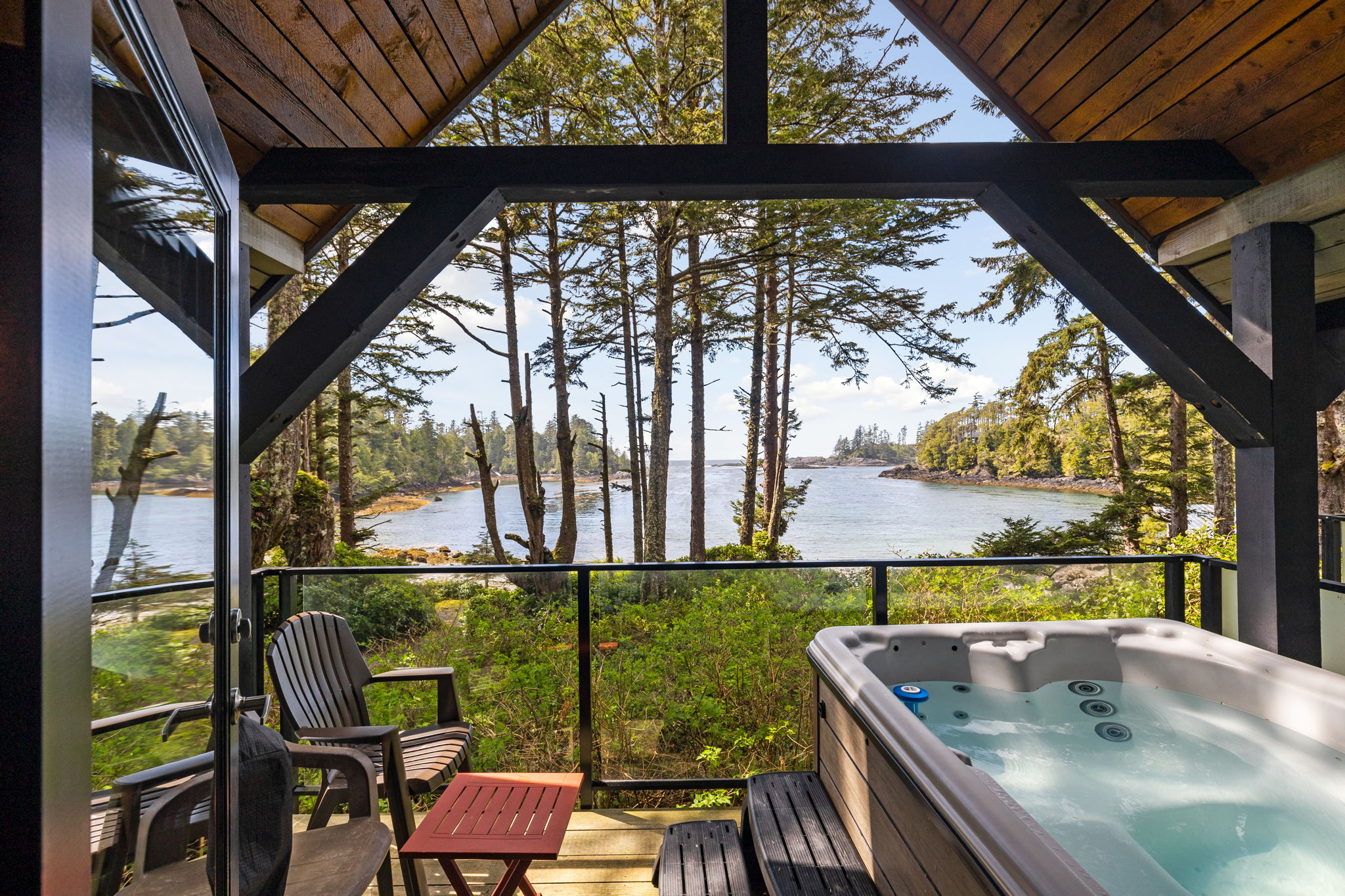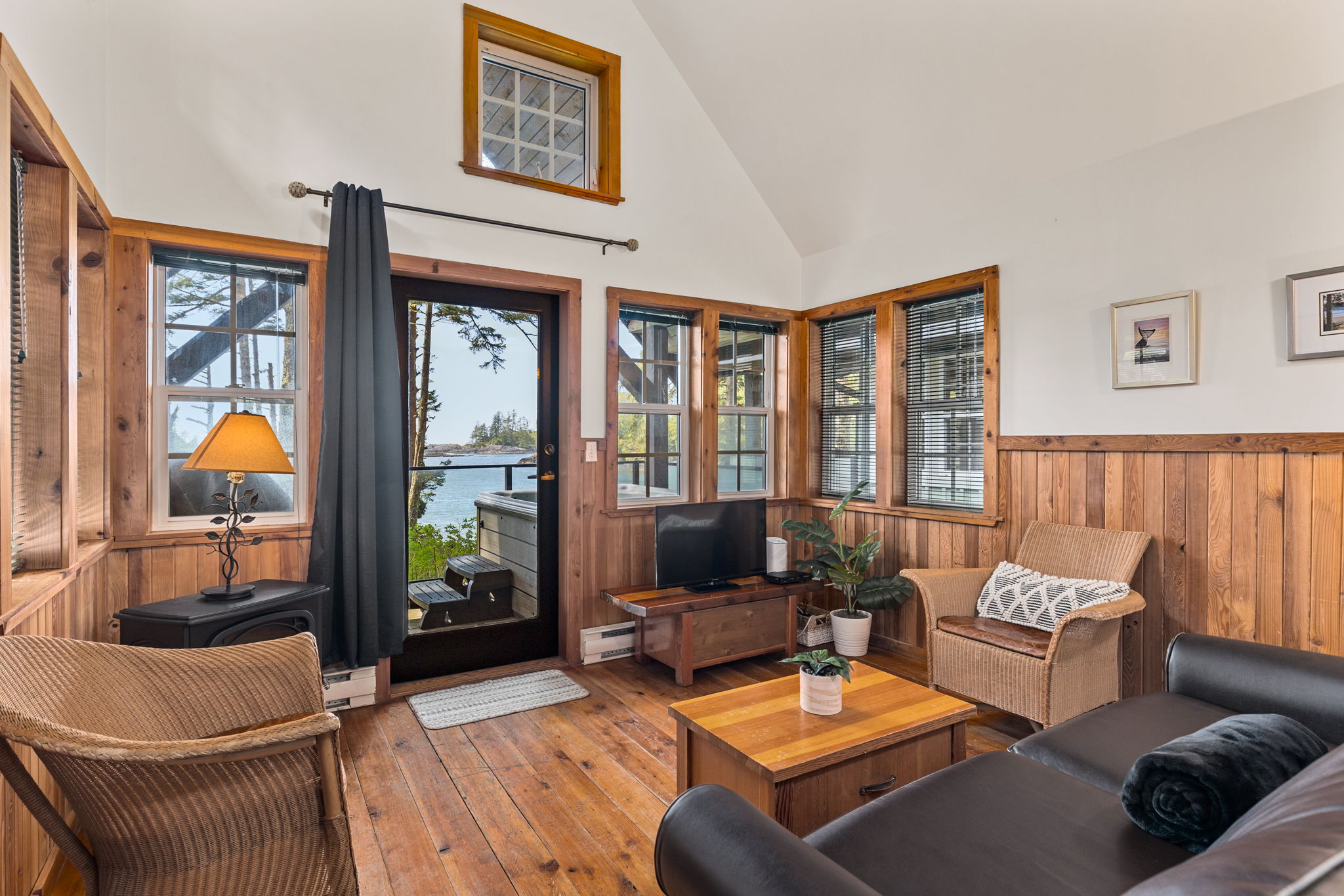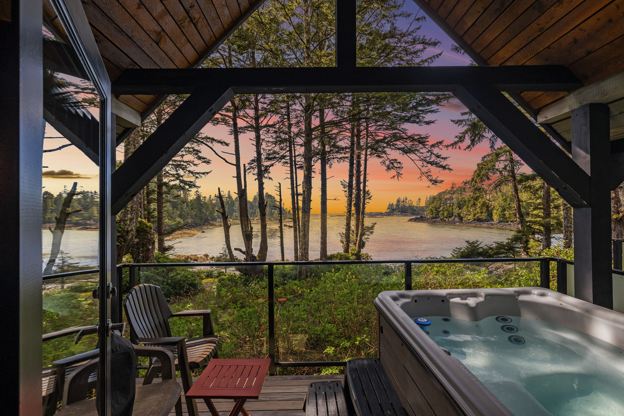 Experience tranquility in your private hot tub under the stars! Nestled next to the Wild Pacific Trail, this timber-rich, beachfront cabin features abundant ocean-facing windows for incredible views. Fire up the BBQ on your private deck overlooking Terrace Beach, explore the inlet at low tide or take your dog for a stroll. Experience the best combination of beach time and easy access to the quaint town of Ucluelet, desirable for families or couples. Once you walk in you’ll never want to leave!
