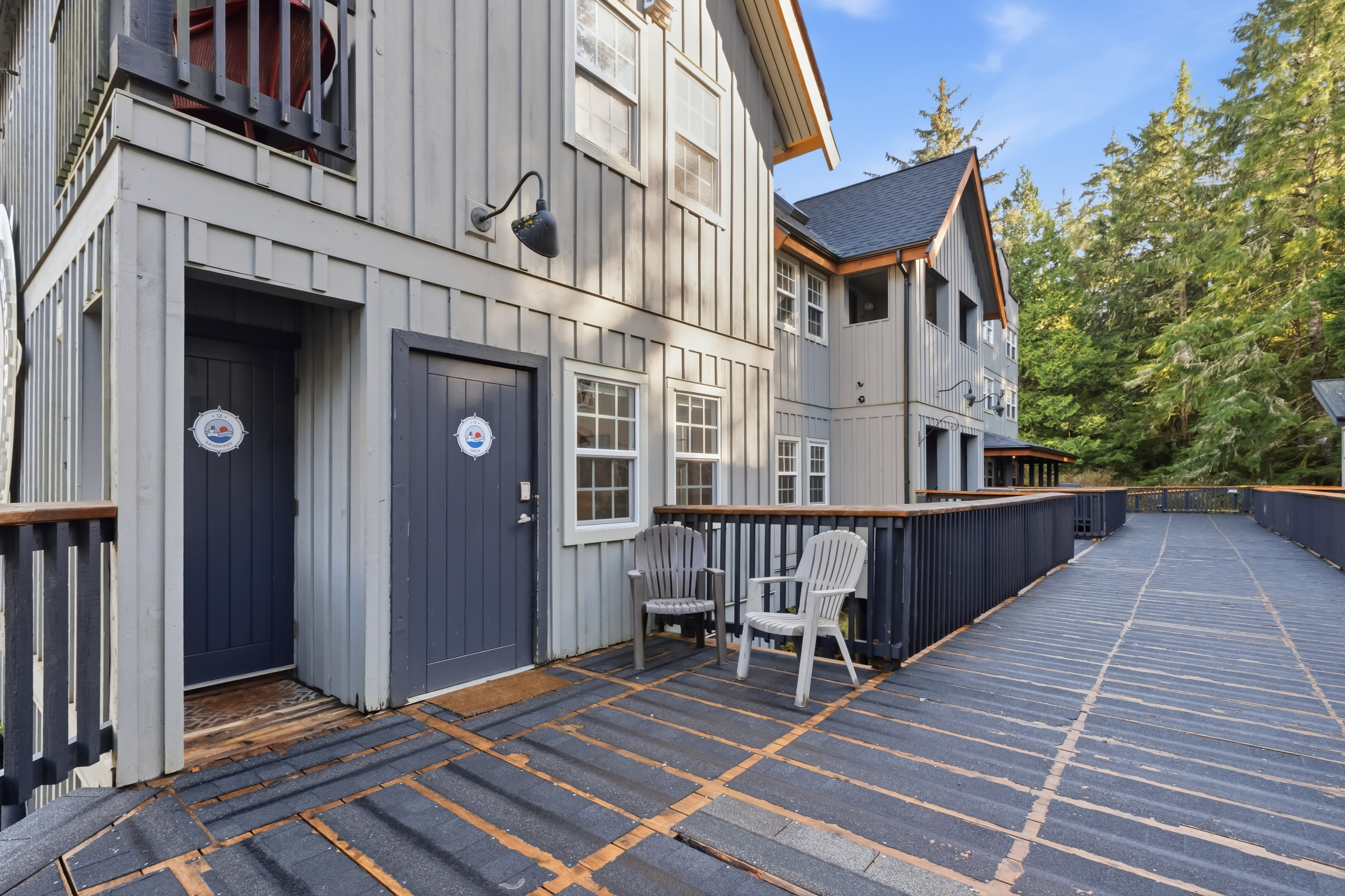 Orca provides a dedicated suite for you and your crew to privately enjoy a memorable vacation. The suite is located in a resort complex connected by boardwalks meandering through the rainforest. You will have your own entrance to access the entire suite.