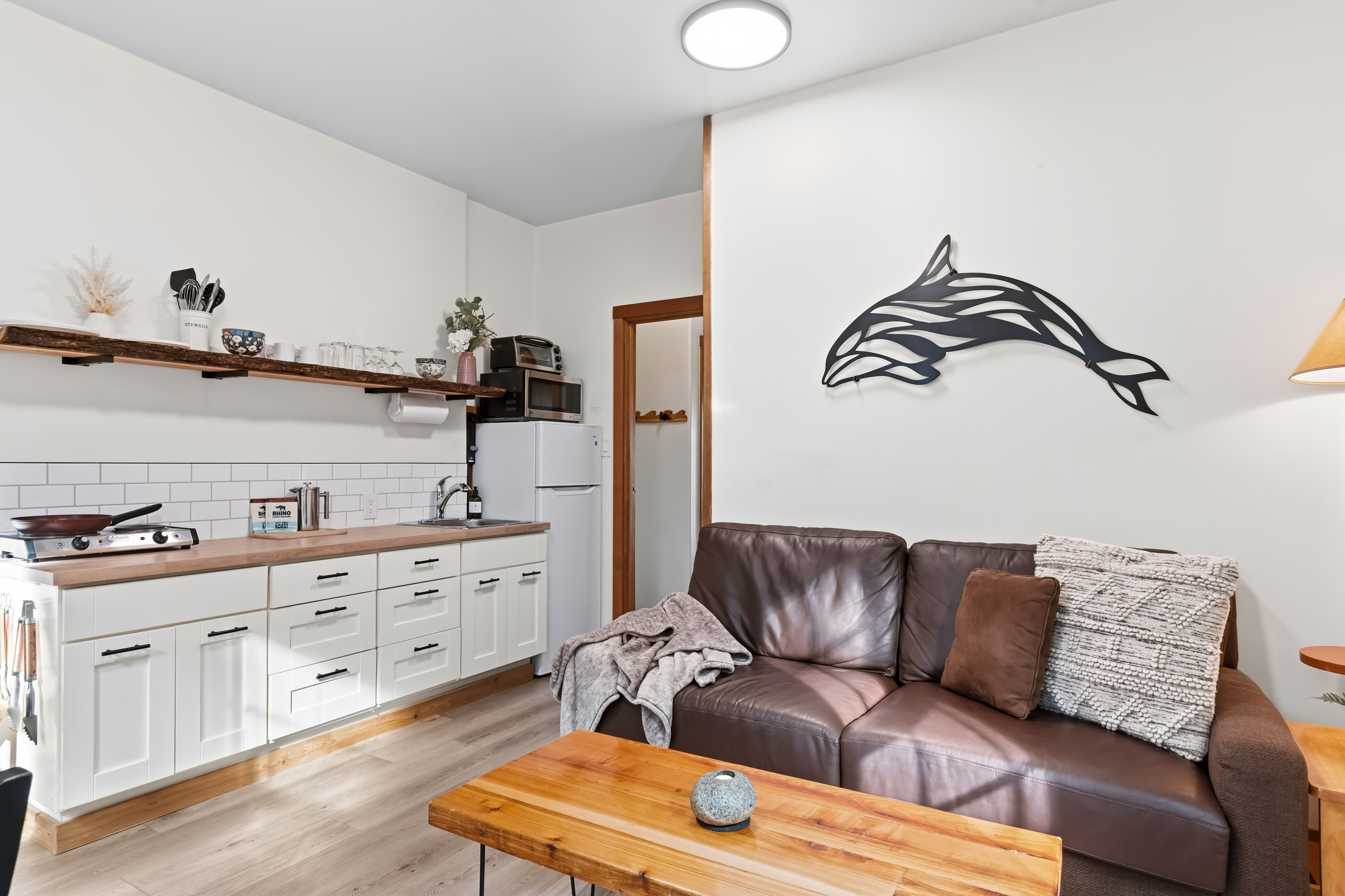Whether you're looking for a retreat from the hustle & bustle of city life, or want to relax by the beach with your furry friend, the 1-bedroom Orca suite at Terrace Beach has all the essentials for an unforgettable getaway! Wander the forested trails and natural coastline just outside your door on the Wild Pacific Trail. Live the west coast vibe on a casual bike ride or paddling at sea, stop by the brewery for a local IPA. Ideal for couples and small families alike.