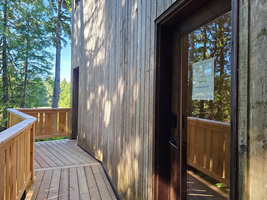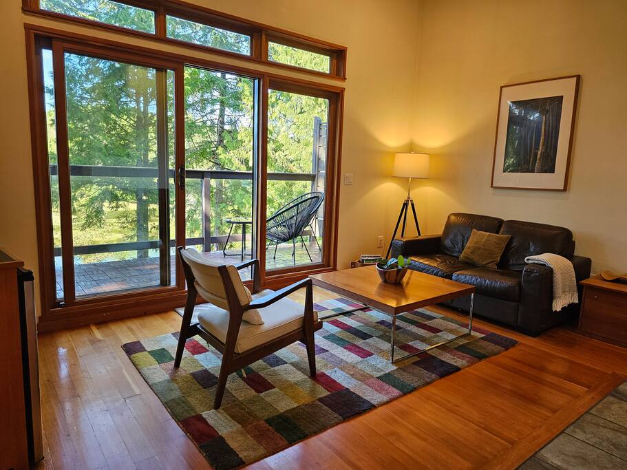 Stay at the Rainforest Loft at Hyphocus Inn! Retreat to a secluded sanctuary designed for nature lovers and couples seeking a peaceful getaway! This adults-only, eco-conscious suite offers stunning views, with a front-row seat to Spring Cove and the lush beauty of the surrounding rainforest. Sip your morning coffee on the private deck, where bird calls and towering cedar trees set the tone for your day.
