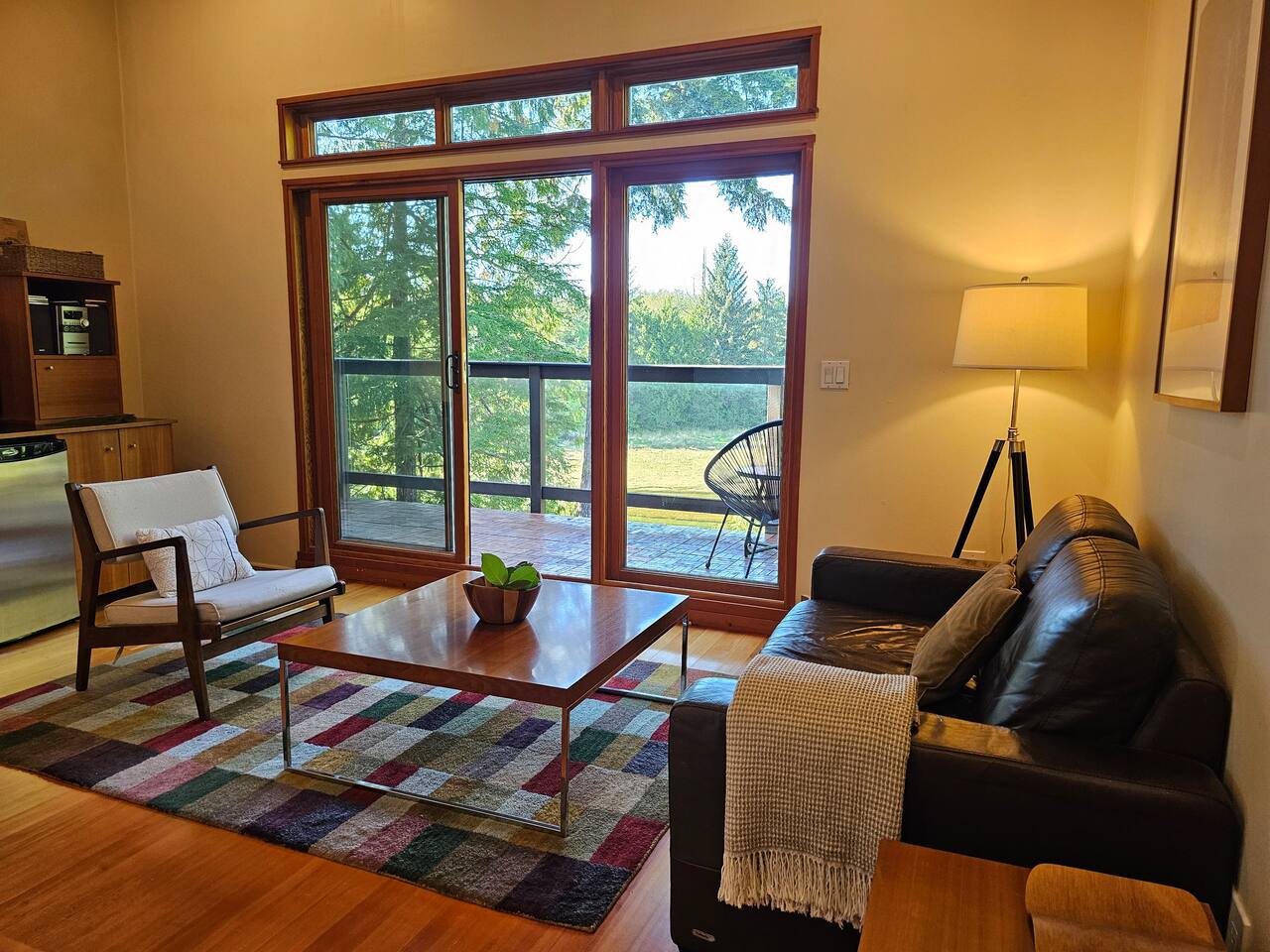Really enjoyed our stay here. The place was beautiful and fire-logs were supplied for evening-time coziness; combined with the bathtub jets and beautiful views this was everything we needed. Just be aware there is no stove or place to cook your own meals. Bryan was a great host!