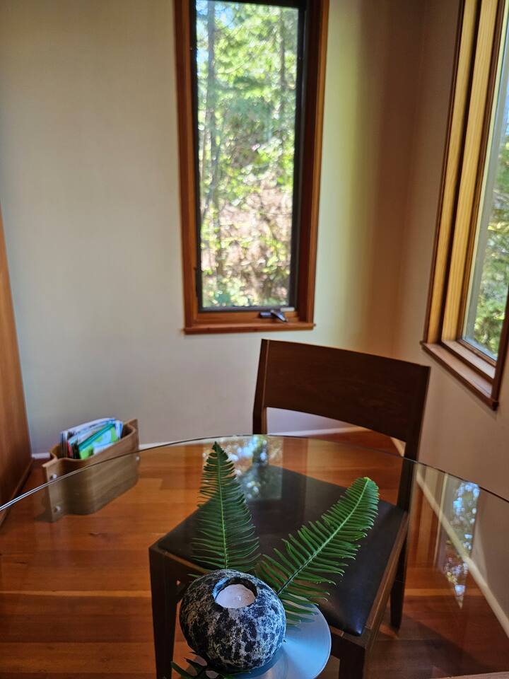 Stay at Spring Cove Shelter at Hyphocus Inn! An adults-only, eco-friendly retreat for couples seeking a place to unplug, reconnect, and unwind in nature’s embrace. Enjoy stunning views from the living area, overlooking Spring Cove and the lush rainforest that surrounds the property. Start your morning sipping coffee on the peaceful deck, and finish the night in front of the cozy wood fireplace!