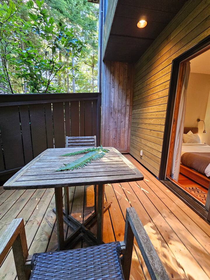 Wake up to the sound of birdsong, enjoy slow mornings on the deck, and spend your days exploring nearby trails, beaches, and charming Ucluelet cafes – all just minutes away. Then return to your private retreat for a soak, a glass of wine by the fire