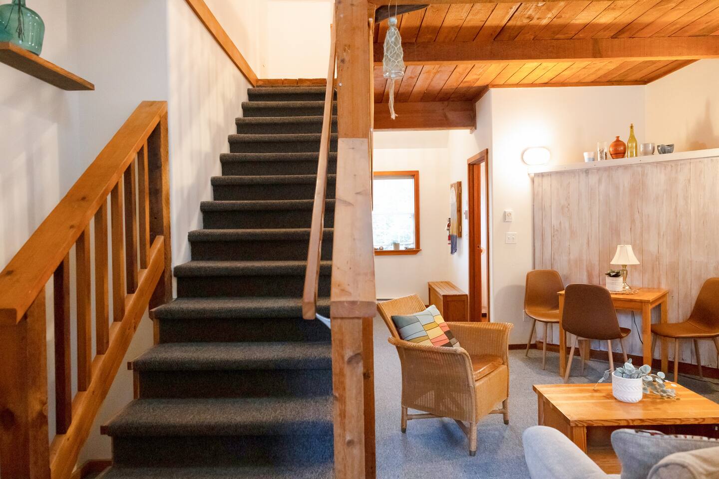 Located near the end of the secluded Ucluelet peninsula on Terrace Beach. Nicknamed “Ukee” by the locals, a hidden gem just 30 minutes drive from the world-famous year-round surfer’s paradise of Tofino, Ucluelet has grown into a popular travel destination on its own. The vibe: a quiet, laid-back pacific northwest surf town with towering old-growth trees, abundant wildlife, and unmatched ocean views around every corner. Take time to check out the unique shops, restaurants, cafes, breweries and distilleries minutes away from your cabin. You can also rent bikes or surfboards/paddleboards/kayaks, hop on a whale-watching tour, visit the aquarium, and venture out on several epic hiking trails. Nestled in the temperate pacific rainforest, the cabin looks out to the open ocean and connects directly to the famous Wild Pacific Trail right at your doorstep. You won’t find this anywhere else!