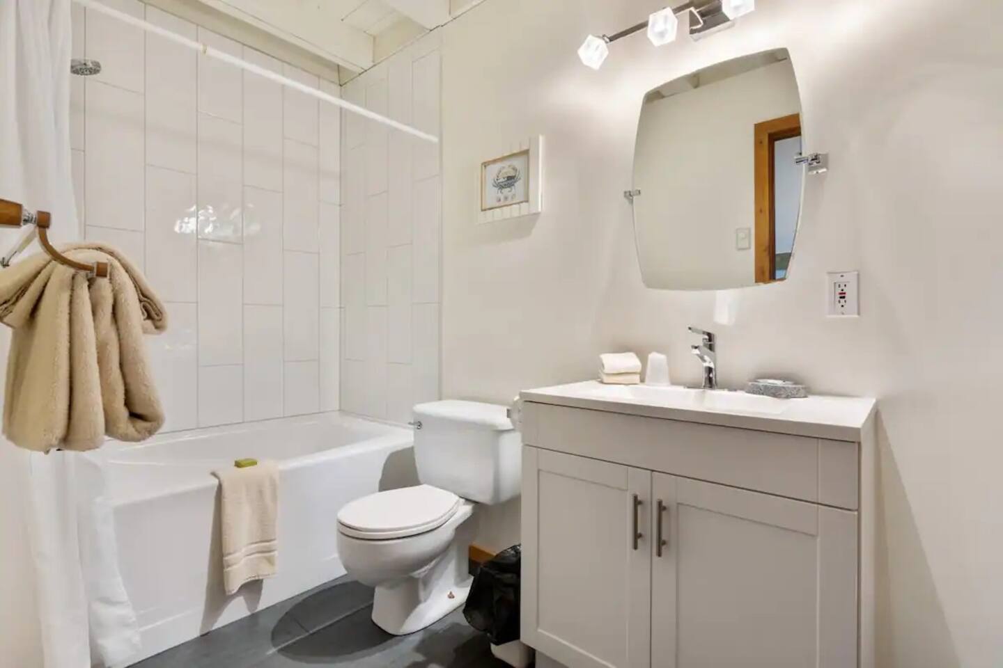 Experience tranquility in your private hot tub under the stars! Nestled next to the Wild Pacific Trail, this timber-rich, beachfront cabin features abundant ocean-facing windows for incredible views. Fire up the BBQ on your private deck overlooking Terrace Beach, explore the inlet at low tide or take your dog for a stroll. Experience the best combination of beach time and easy access to the quaint town of Ucluelet, desirable for families or couples. Once you walk in you’ll never want to leave!