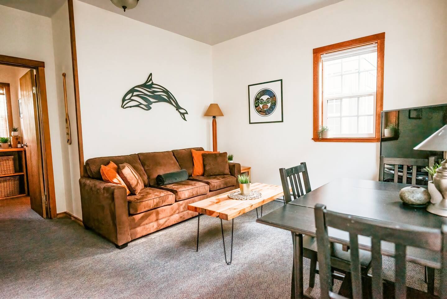 Whether you're looking for a retreat from the hustle & bustle of city life, or want to relax by the beach with your furry friend, the 1-bedroom Orca suite at Terrace Beach has all the essentials for an unforgettable getaway! Wander the forested trails and natural coastline just outside your door on the Wild Pacific Trail. Live the west coast vibe on a casual bike ride or paddling at sea, stop by the brewery for a local IPA. Ideal for couples and small families alike.