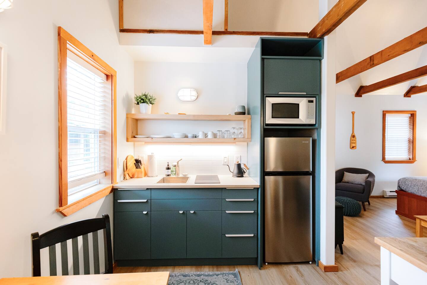 Located near the end of the secluded Ucluelet peninsula on Terrace Beach. Nicknamed “Ukee” by the locals, a hidden gem just 30 minutes drive from the world-famous year-round surfer’s paradise of Tofino, Ucluelet has grown into a popular travel destination on its own. The vibe: a quiet, laid-back pacific northwest surf town with towering old-growth trees, abundant wildlife, and unmatched ocean views around every corner. Take time to check out the unique shops, restaurants, cafes, breweries and distilleries minutes away from your cabin. You can also rent bikes or surfboards/paddleboards/kayaks, hop on a whale-watching tour, visit the aquarium, and venture out on several epic hiking trails. Nestled in the temperate pacific rainforest, the cabin looks out to the open ocean and connects directly to the famous Wild Pacific Trail right at your doorstep. You won’t find this anywhere else!