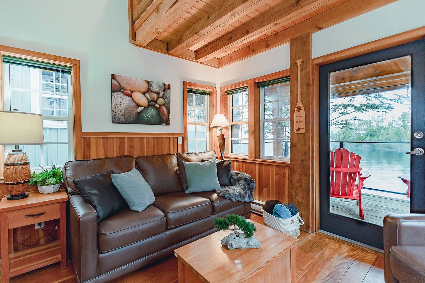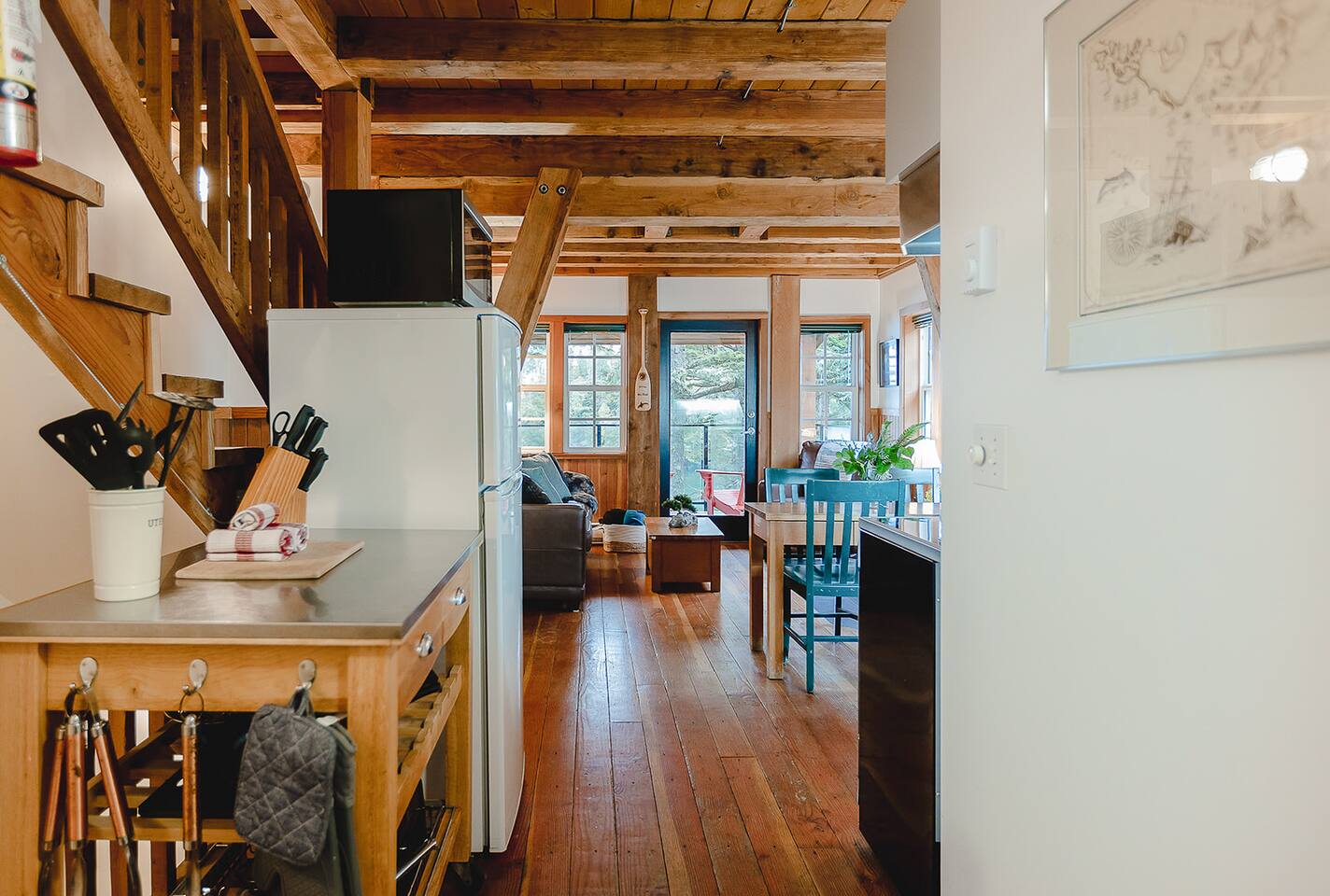 Located near the end of the secluded Ucluelet peninsula on Terrace Beach. Nicknamed “Ukee” by the locals, a hidden gem just 30 minutes drive from the world famous year-round surfer’s paradise of Tofino, Ucluelet has grown into a popular travel destination on its own. The vibe: a quiet, laid-back pacific northwest surf town with towering old growth trees, abundant wildlife, and unmatched ocean views around every corner. Take time to check out the unique shops, restaurants, cafes, breweries and distilleries minutes away from your cabin. You can also rent bikes or surfboards/paddleboards/kayaks, hop on a whale watching tour, visit the aquarium, and venture out on several epic hiking trails. Nestled in the temperate pacific rainforest, the cabin looks out to the open ocean and connects directly to the famous Wild Pacific Trail right at your doorstep. You won’t find this anywhere else!
