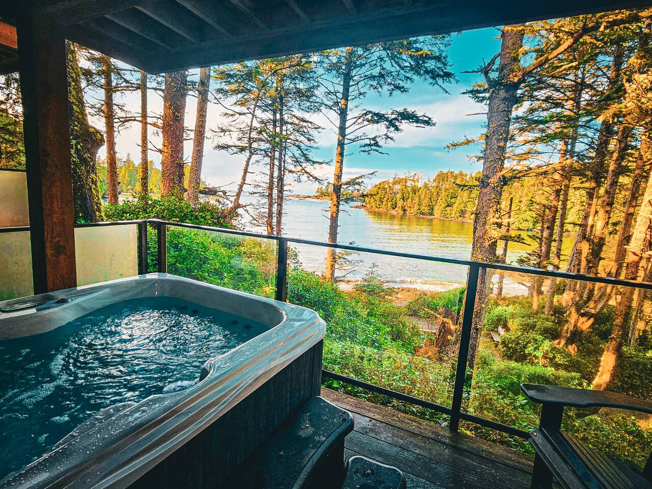 Discover the ultimate oceanfront retreat! The rustic timber architecture of this cabin blends effortlessly into its natural landscape. Soak up the breathtaking ocean views and listen to the eagles sing after a day of surfing from your private, 4-person hot tub on the covered lower deck - perfect for storm watching! Located at Terrace Beach, just steps from the renowned Wild Pacific Trail, Sea Glass is the ideal getaway for special occasions, couples or family vacations.
