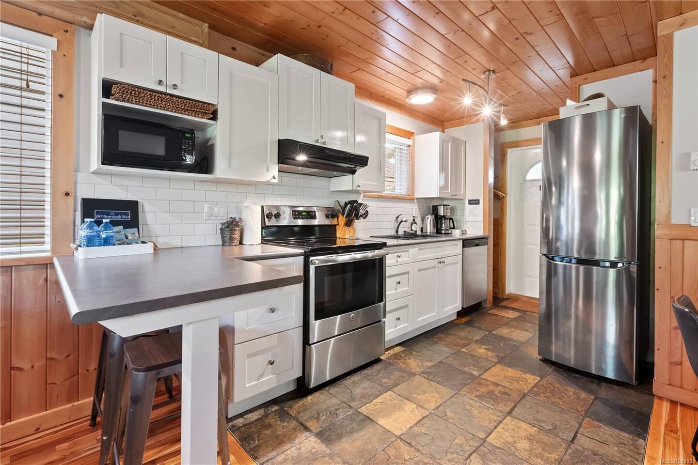 Let the rhythm of the ocean and the whisper of the trees welcome you home to the Seas & Trees Cabin. Nestled on peaceful Spring Cove, a short stroll to iconic Terrace Beach, and the Wild Pacific Trail. This 2-bed, 2-bath getaway sleeps up to 6 and features ocean views, a cozy fireplace, fully stocked kitchen, and a spacious covered deck for dining. Fall asleep to the sound of waves and wake to eagles overhead. Ideal for families + pets, couples, or friends seeking the coastal charm of Ucluelet.